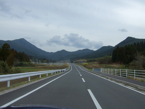 肝属広域農道に入る。どーんと続くまっすぐな道。