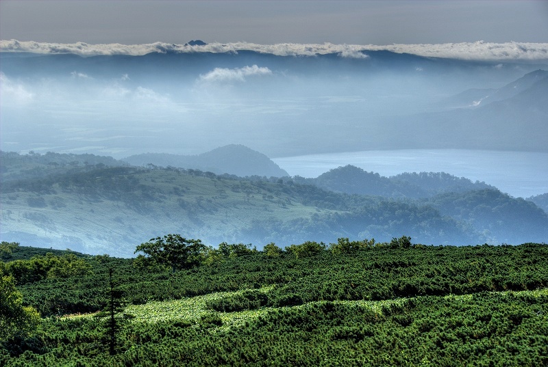 残念ながら屈斜路湖は薄雲を通して見えるのみ。