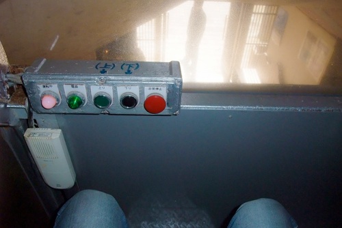 通路には自分で運転するケーブルカーがあり、これで山の上にある砲台跡へ登って行くのである。