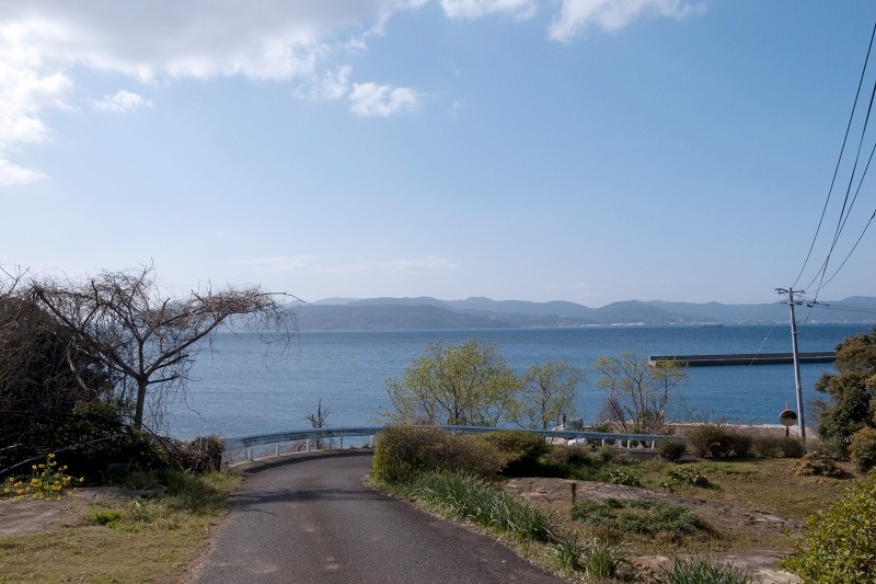 鷹島の西端、舩唐津免の港まで行った。そのまま県道を離れて島の北岸の道を行く。