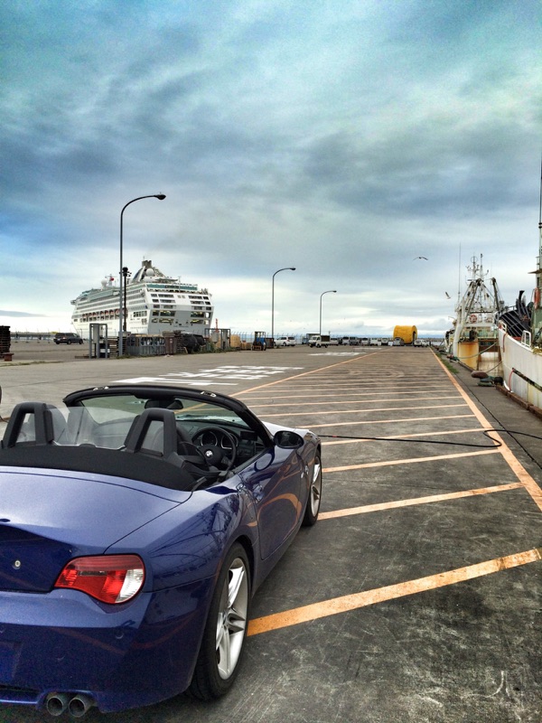 網走港に巨大な船が見えてきたので港へ入っていった。