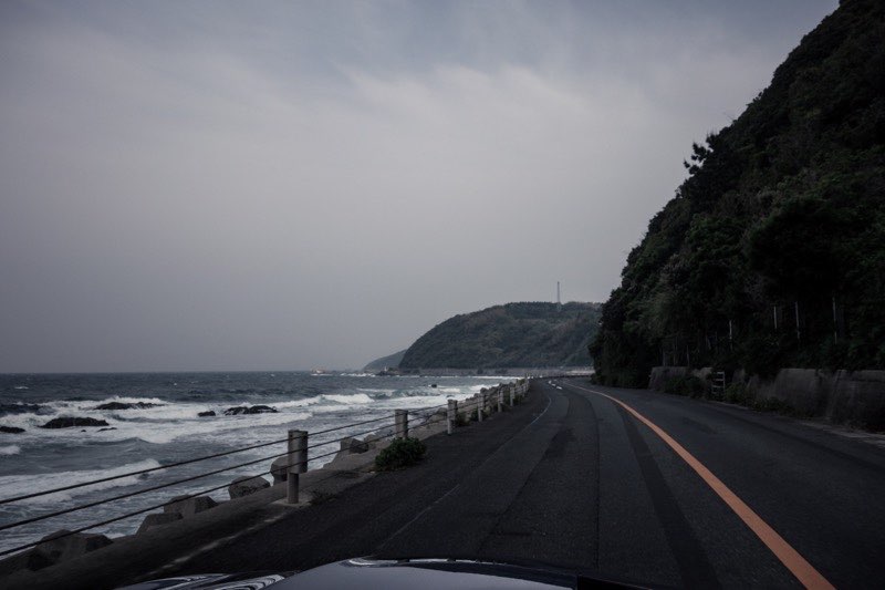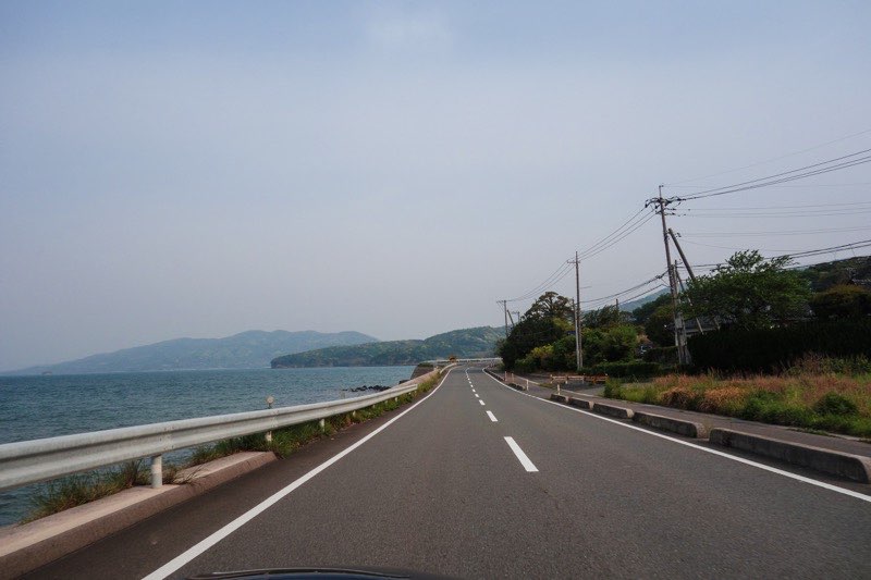 国道191号は福江付近で初めて海沿いに出ます。少々海が荒れているようです。風はさほどありません。