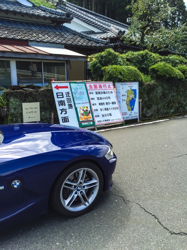 道の駅なんごうへ向かっていると県道439号線との分岐で迂回路看板を発見。どうも道の駅なんごうの先で路肩決壊があったようで通行止めらしい。道の駅なんごうはどうせ食事は無いので寄らずに引き続き県道439号で南下することにする。