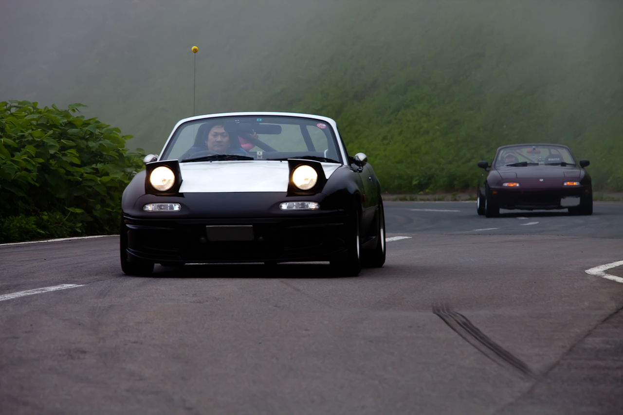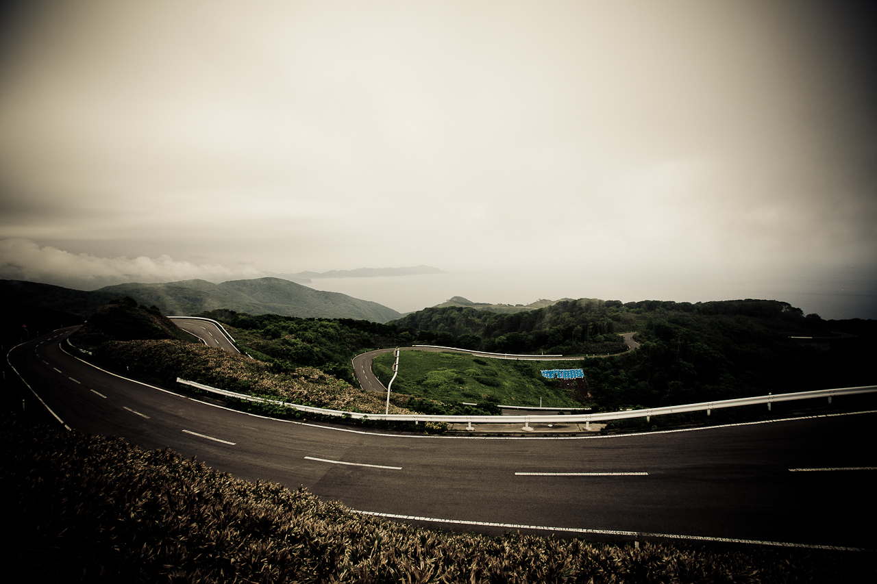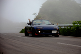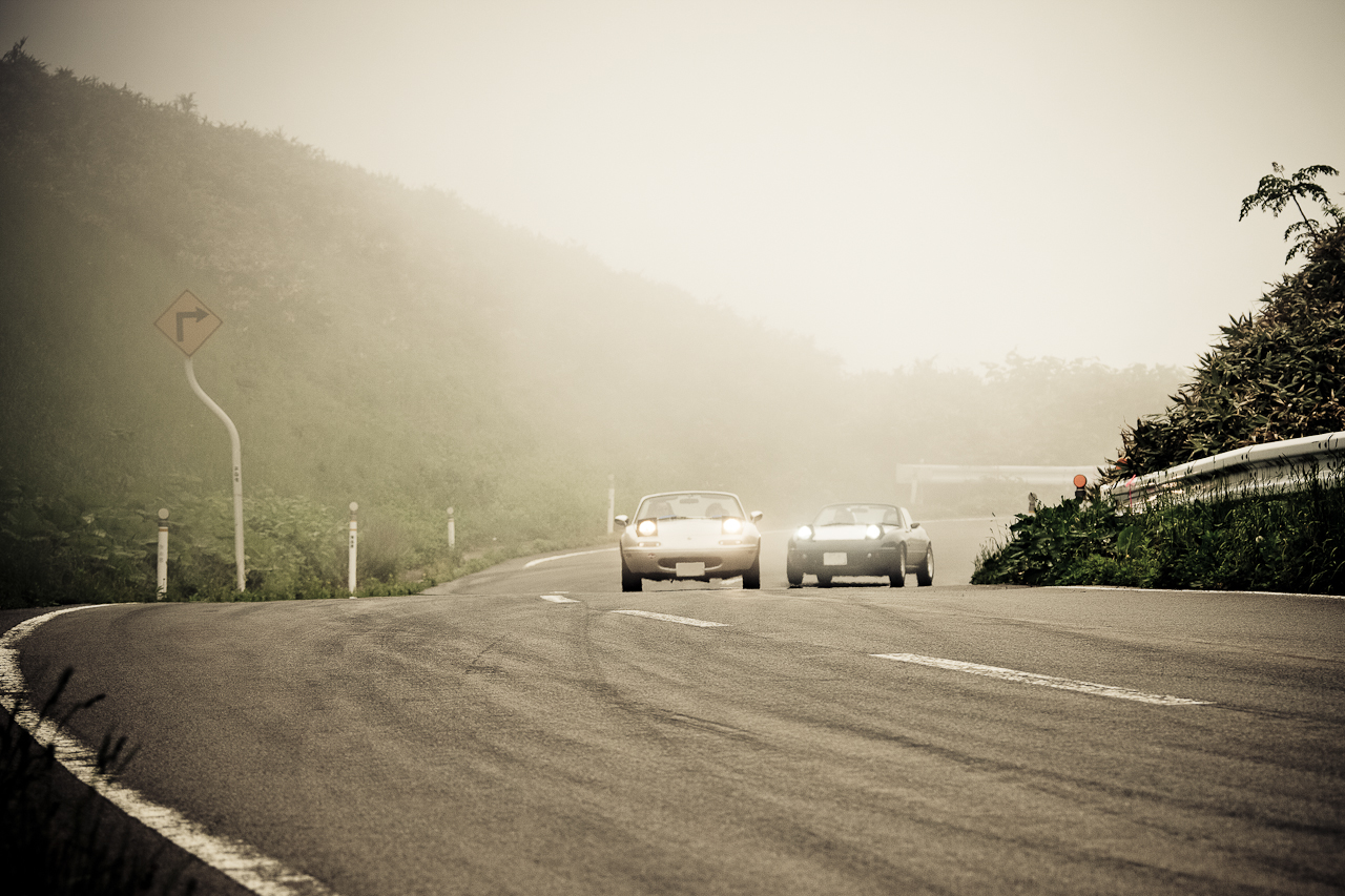 霧にかすむ龍泊ライン シーサイドから一気に眺瞰台へと駆け上がる まさに、人馬一体 ロードスターは軽やかに、この昇竜の道を駆け上がっていく北の果てのドライビングヘブンこころ躍るドライブそして、こころに残る旅となる